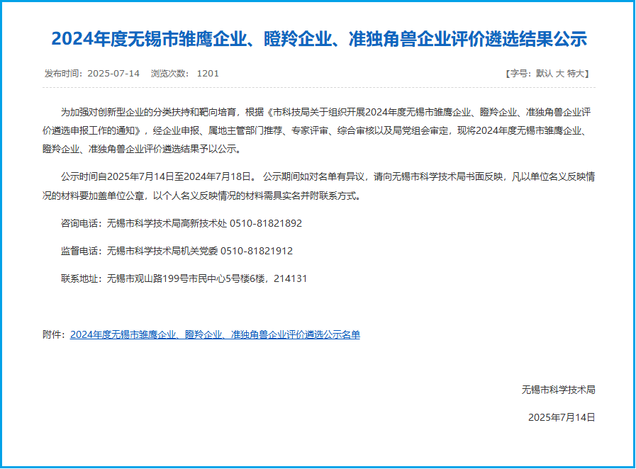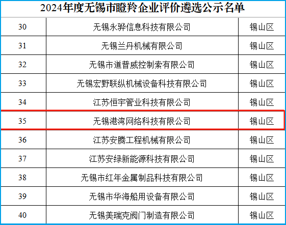 在科技創(chuàng)新的賽道上,每一次突破都是實力的見證,每一份榮譽都是前行的動力。近日,無錫市科學(xué)技術(shù)局公示了2024年度無錫市雛鷹企業(yè)、瞪羚企業(yè)、準(zhǔn)獨角獸企業(yè)評價遴選結(jié)果公示企業(yè)名單,港灣科技憑借卓越的創(chuàng)新能力、穩(wěn)健的發(fā)展態(tài)勢以及在行業(yè)內(nèi)的突出表現(xiàn),成功入選無錫市瞪羚企業(yè),這是對港灣科技多年來堅持技術(shù)創(chuàng)新、深耕行業(yè)應(yīng)用的高度認(rèn)可!